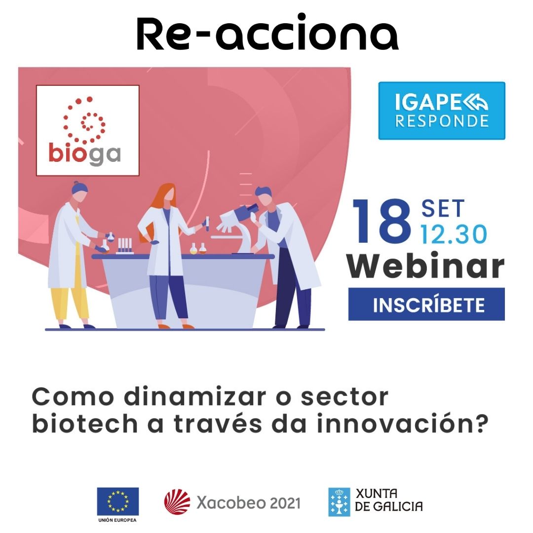 Para máis información e inscrición: http://reacciona.igape.es/index.php/2020/09/04/18-09-2020-como-dinamizar-o-sector-biotech-a-traves-da-innovacion/